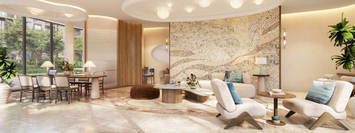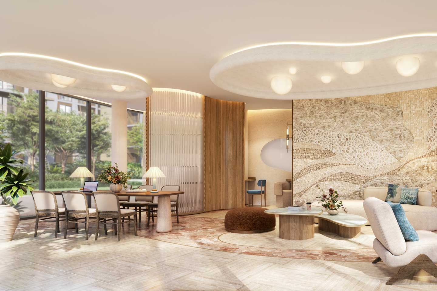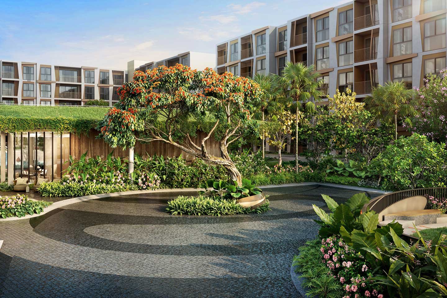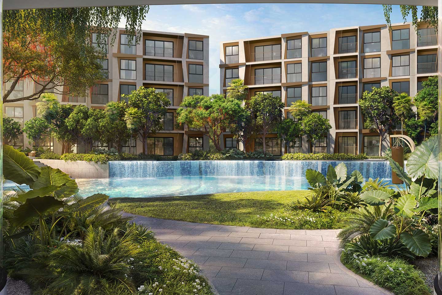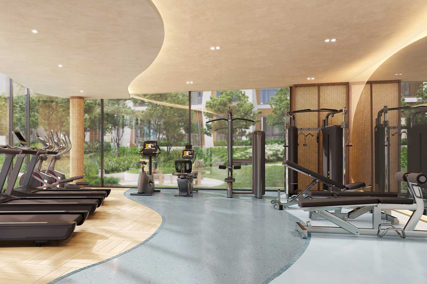Facilities elevate daily life without overwhelming it. A large central swimming pool anchors the grounds, flanked by tropical gardens, a fully equipped gym, sauna, yoga area, co-working spaces, and a pet park. Add concierge services, 24-hour security, covered parking, and communal lounges, and the resort-style feel becomes effortless—perfect for unwinding or staying productive.