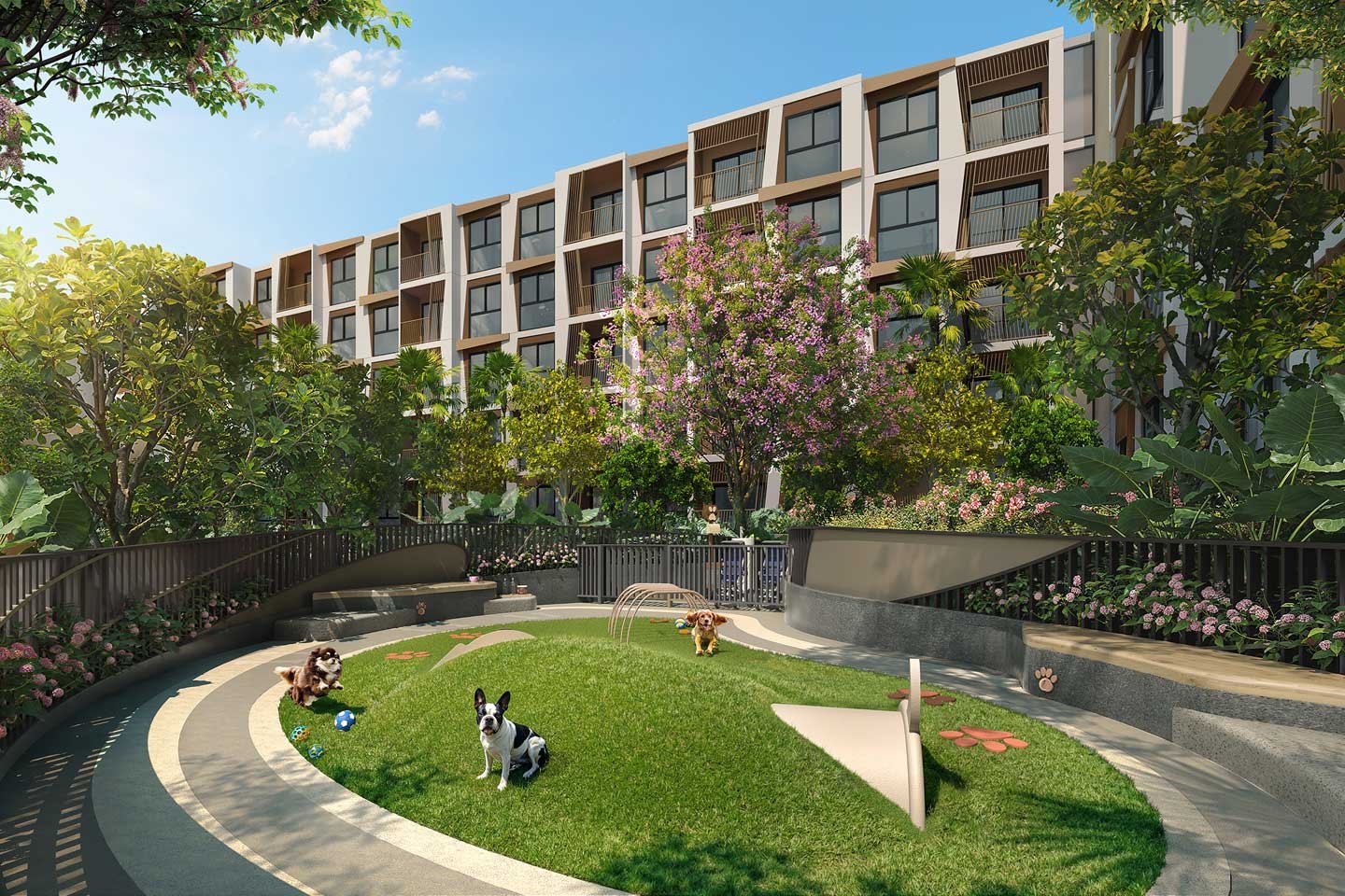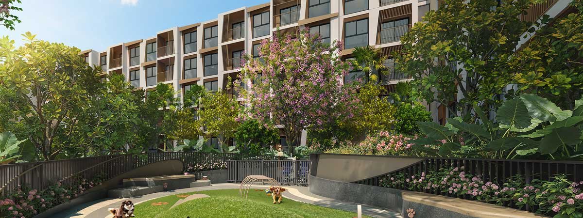 The design draws you in with its thoughtful, nature-immersed approach. Units range from compact 29–35 sqm one-bedrooms to more generous 47–65 sqm two-bedrooms (with one- or two-bathroom options), featuring open layouts, high ceilings, fitted kitchens, and private balconies that blur the line between indoors and out. Pet-friendly touches make it welcoming for families with furry members, while modern finishes and smart space planning ensure every home feels airy and functional.