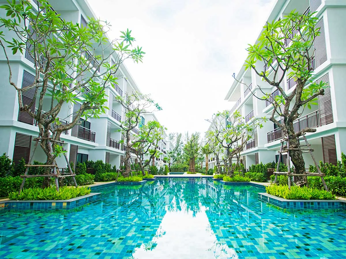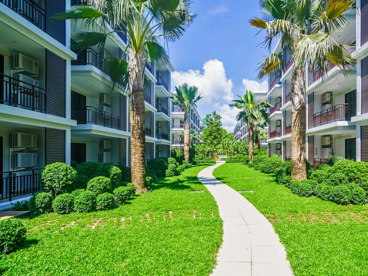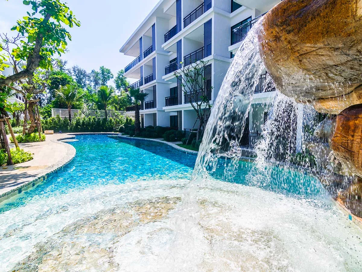 Designed with attention to detail, well thought out and fully utilized, The Title Condiminium offers the large common area with ripple bright blue swimming pools, walkways, and fitness surrounded by tropical jungle.