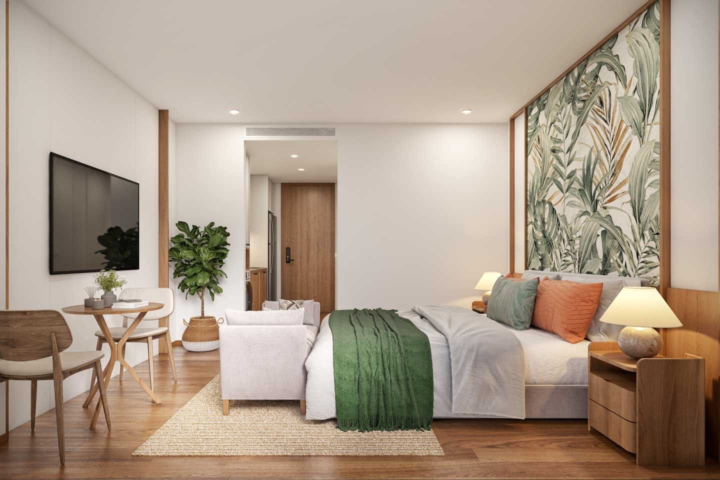 VIP Tropika‘s architecture emphasizes harmony with its surroundings. The seven-story, four-building layout keeps things intimate and low-density, allowing generous green spaces and natural light to define every corner. Units—from compact studios to expansive duplexes—are fully furnished with modern, high-quality touches: open layouts, large balconies that extend living outdoors, premium European-standard fixtures, and thoughtful storage solutions.